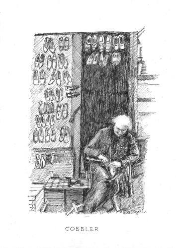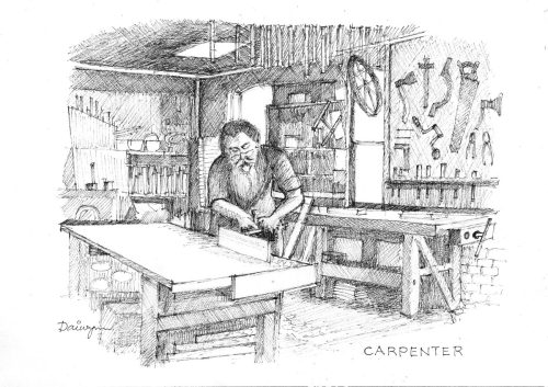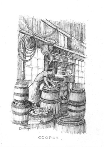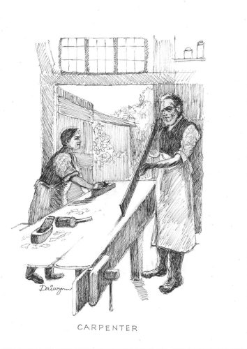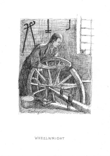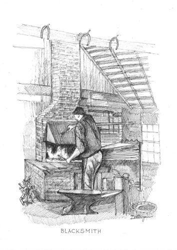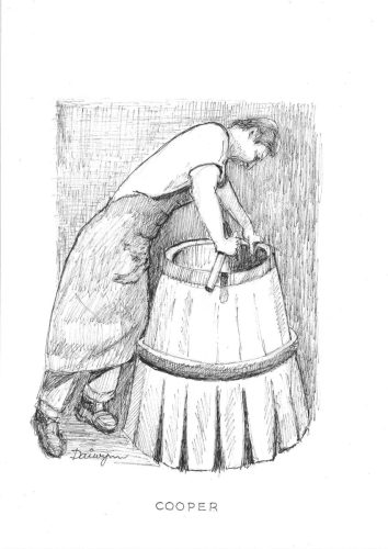 Pen and ink sketches commissioned for a book on old handcraft trades.